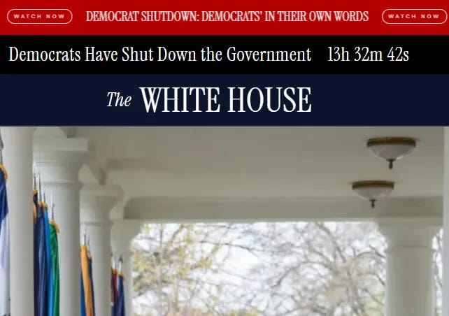And the Trump administration was ready as soon as the shutdown hit. I received an email from the VA explaining how the shutdown impacts my healthcare. “Unfortunately, Democrats are blocking this Continuing Resolution in the U.S. Senate due to unrelated policy demands,” it said — which is relatively tame compared to what some other agencies are doing: